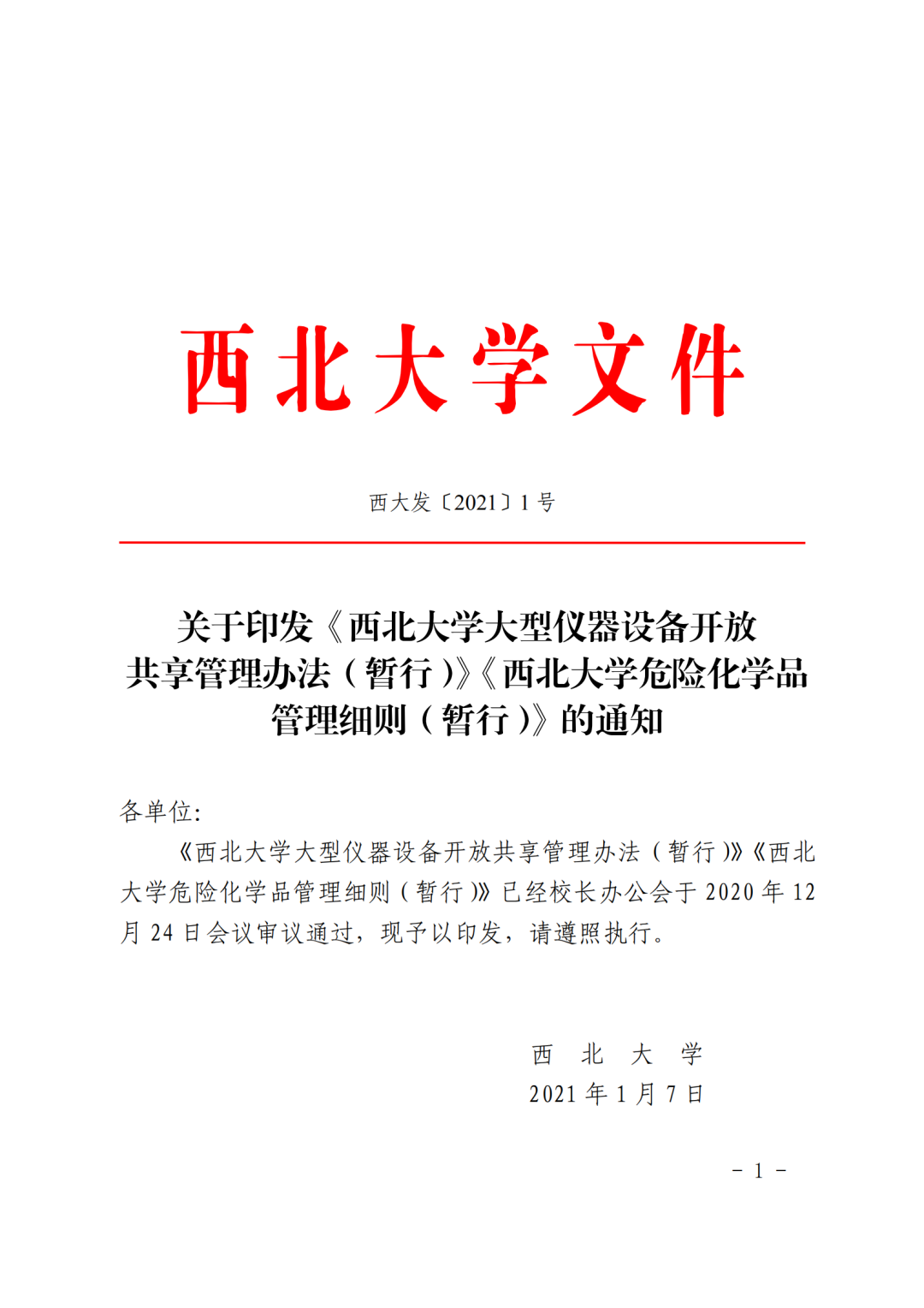 2021年學(xué)校制定出臺了《西北大學(xué)大型儀器設(shè)備開放共享管理辦法》(西大發(fā)〔2021〕1號),并將推進(jìn)優(yōu)質(zhì)實驗室資源共建共享列入《西北大學(xué)十四五公共服務(wù)平臺與信息化建設(shè)發(fā)展規(guī)劃》中,完善集中與分散相結(jié)合、挖掘潛能與提升效益相結(jié)合的大型儀器共建共享運維模式。