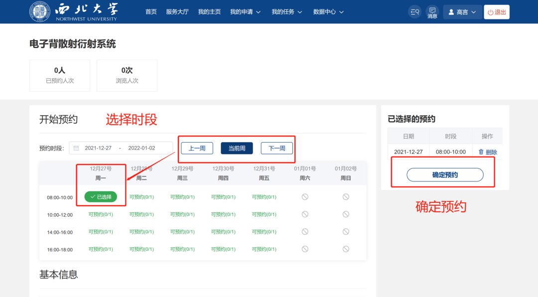 查看設(shè)備信息—選擇預(yù)約時段—確定預(yù)約。