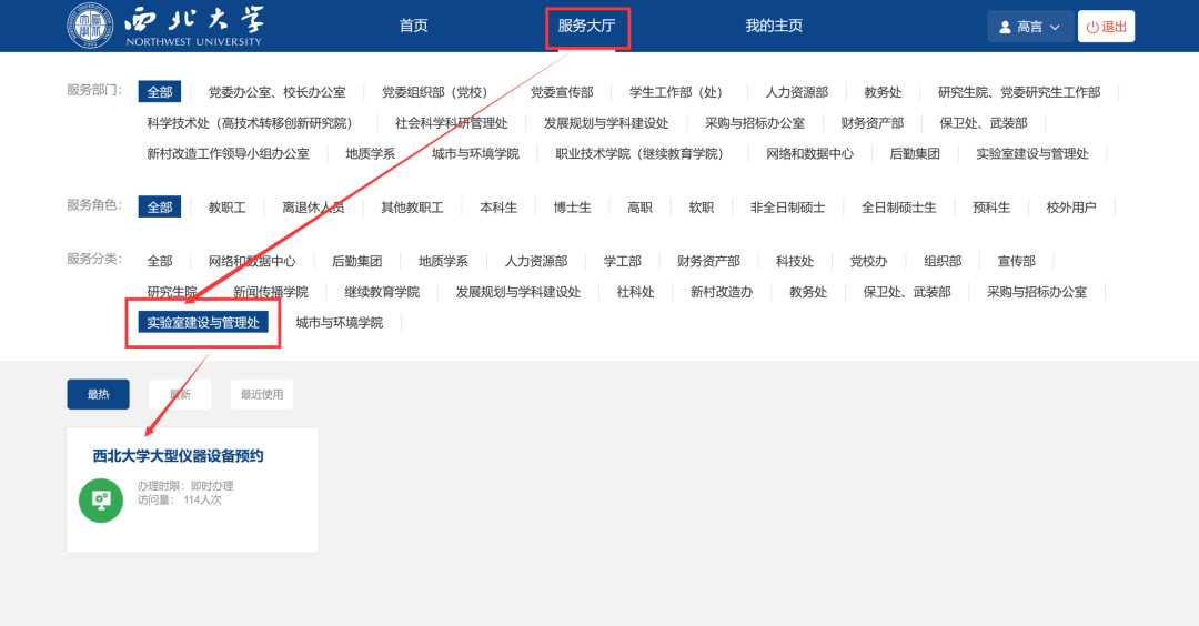 登錄網(wǎng)絡(luò)辦事大廳—服務(wù)大廳—儀器設(shè)備預(yù)約平臺。
