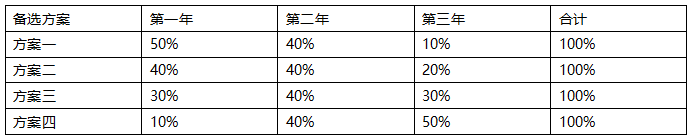 1.某施工單位擬投資一項目,在投資總額和年收益不變的情況下,四個備選方案各年投資比例如下表(投資時點均相同),則對改單位較為有利的方案是()。