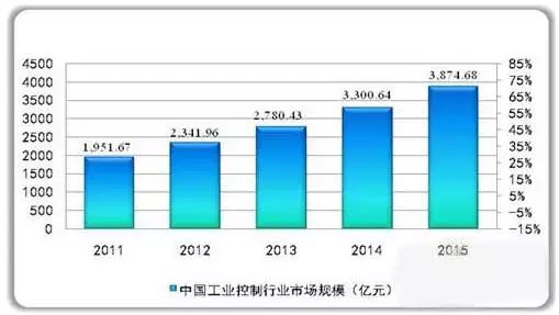 在中國大力發(fā)展高端裝備及政策扶持、產(chǎn)業(yè)升級、人力成本上升和替代進口等眾多因素的推動下,未來中國工業(yè)控制行業(yè)市場將不斷增大,預計中國工業(yè)控制行業(yè)市場將不斷增長,2015年市場規(guī)模將達到3874.68億元。