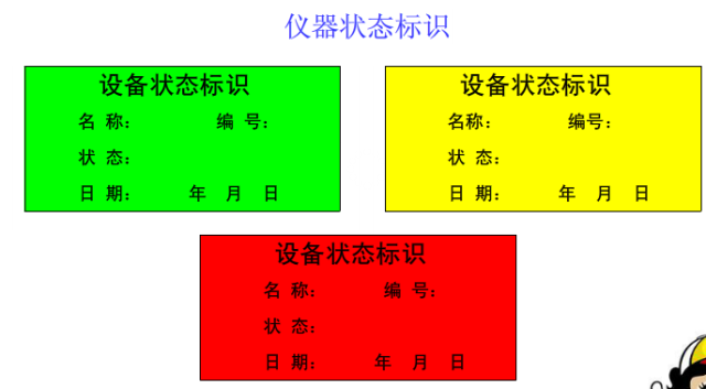 儀器設(shè)備應(yīng)有明顯的標(biāo)識(shí)表明其檢定/校準(zhǔn)狀態(tài),使儀器的狀態(tài)一目了然,便于管理。狀態(tài)標(biāo)識(shí)一般分為以下幾種: