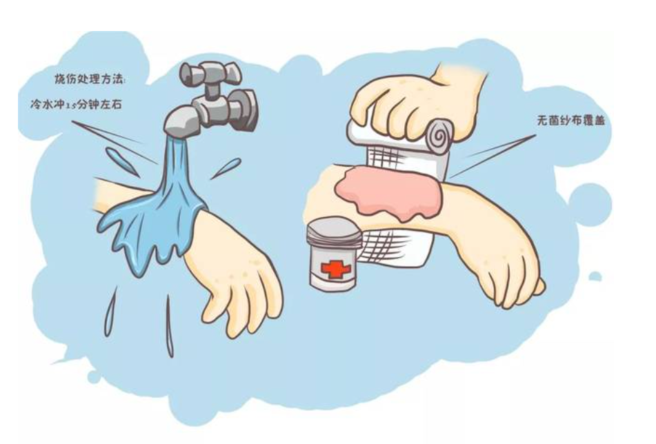 ★如果創(chuàng)面紅腫、起水泡,要先在創(chuàng)面覆蓋干凈的厚紗布、毛巾等再?zèng)_洗,不能直接用冷水沖洗;